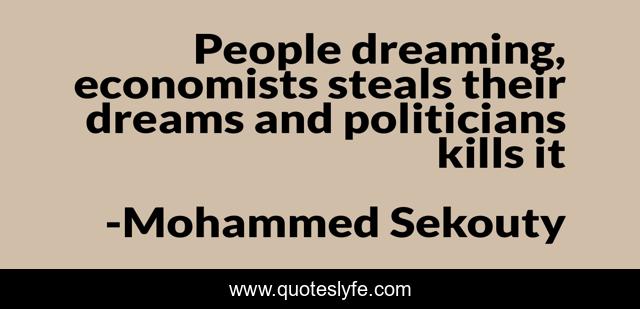 This page presents the quote "People dreaming, economists steals their dreams and politicians kills it". Author of this quote is Mohammed Sekouty. .