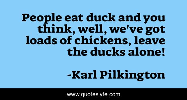 This page presents the quote "People eat duck and you think, well, we've got loads of chickens, leave the ducks alone!". Author of this quote is Karl Pilkington. This quote is about think, people,.