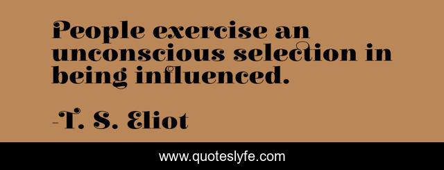 This page presents the quote "People exercise an unconscious selection in being influenced.". Author of this quote is T. S. Eliot. .