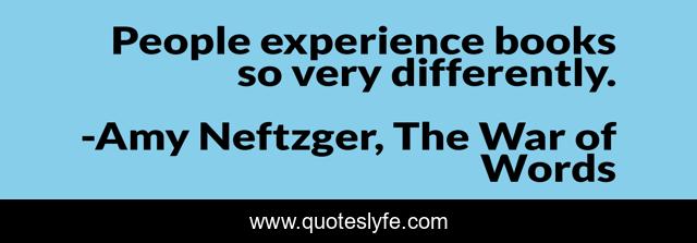 "Amy Neftzger, The War of Words Quotes." Quoteslyfe.com, 2025. Mon. 08 Dec. 2025. <https://www.quoteslyfe.com/quote/People-experience-books-so-very-differently-67068>.