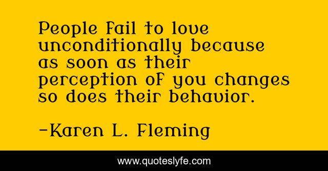 This page presents the quote "People fail to love unconditionally because as soon as their perception of you changes so does their behavior.". Author of this quote is Karen L. Fleming. .