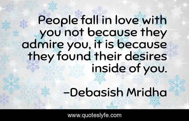 This page presents the quote "People fall in love with you not because they admire you, it is because they found their desires inside of you.". Author of this quote is Debasish Mridha. This quote is about admiration, love, desires, philosophy, debasish-mridha, quotes, inspirational, enthusiasm, fall-in-love,.