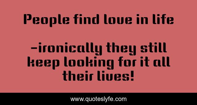 This page presents the quote "People find love in life". Author of this quote is ironically they still keep looking for it all their lives!. .