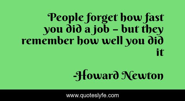 This page presents the quote "People forget how fast you did a job – but they remember how well you did it". Author of this quote is Howard Newton. This quote is about perseverance, haste, quality,.