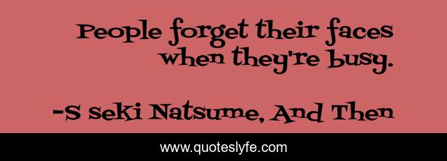 This page presents the quote "People forget their faces when they're busy.". Author of this quote is Sōseki Natsume, And Then. .