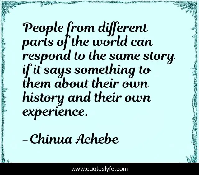 "Chinua Achebe Quotes." Quoteslyfe.com, 2025. Fri. 05 Dec. 2025. <https://www.quoteslyfe.com/quote/People-from-different-parts-of-the-world-304034>.