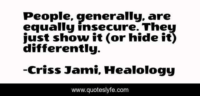 "Criss Jami, Healology Quotes." Quoteslyfe.com, 2025. Fri. 05 Dec. 2025. <https://www.quoteslyfe.com/quote/People-generally-are-equally-insecure-They-just-135207>.