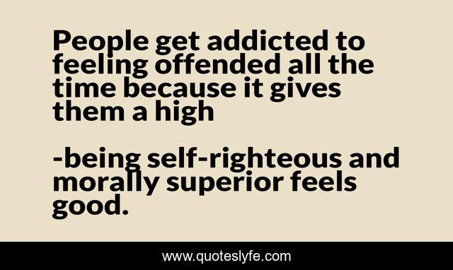 "being self-righteous and morally superior feels good. Quotes." Quoteslyfe.com, 2025. Fri. 05 Dec. 2025. <https://www.quoteslyfe.com/quote/People-get-addicted-to-feeling-offended-all-236875>.