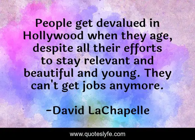 This page presents the quote "People get devalued in Hollywood when they age, despite all their efforts to stay relevant and beautiful and young. They can't get jobs anymore.". Author of this quote is David LaChapelle. This quote is about beautiful, young, people,.