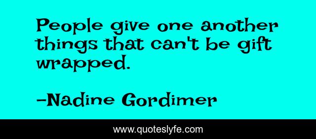 This page presents the quote "People give one another things that can't be gift wrapped.". Author of this quote is Nadine Gordimer. This quote is about people, gift, give,.