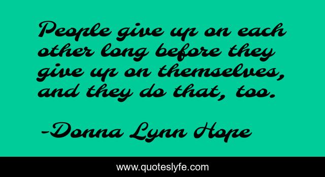 "Donna Lynn Hope Quotes." Quoteslyfe.com, 2025. Sun. 07 Dec. 2025. <https://www.quoteslyfe.com/quote/People-give-up-on-each-other-long-223664>.