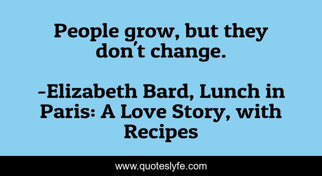 "Elizabeth Bard, Lunch in Paris: A Love Story, with Recipes Quotes." Quoteslyfe.com, 2025. Fri. 05 Dec. 2025. <https://www.quoteslyfe.com/quote/People-grow-but-they-don-t-change-175441>.