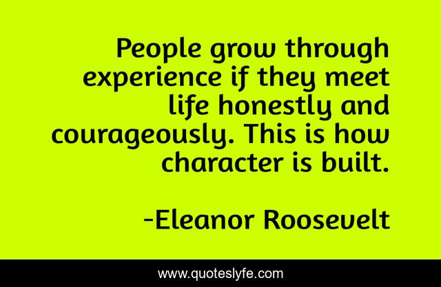 This page presents the quote "People grow through experience if they meet life honestly and courageously. This is how character is built.". Author of this quote is Eleanor Roosevelt. This quote is about life, character, people,.