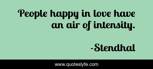This page presents the quote "People happy in love have an air of intensity.". Author of this quote is Stendhal. This quote is about happy, people, air,.