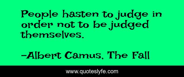 "Albert Camus, The Fall Quotes." Quoteslyfe.com, 2025. Fri. 05 Dec. 2025. <https://www.quoteslyfe.com/quote/People-hasten-to-judge-in-order-not-238335>.