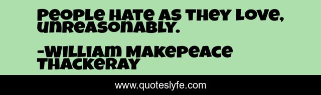 This page presents the quote "People hate as they love, unreasonably.". Author of this quote is William Makepeace Thackeray. This quote is about hate, love, affection,.