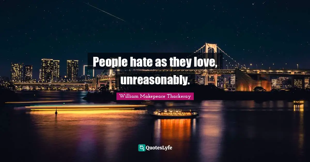 "William Makepeace Thackeray Quotes." Quoteslyfe.com, 2025. Mon. 29 Dec. 2025. <https://www.quoteslyfe.com/quote/People-hate-as-they-love-unreasonably-163249>.
