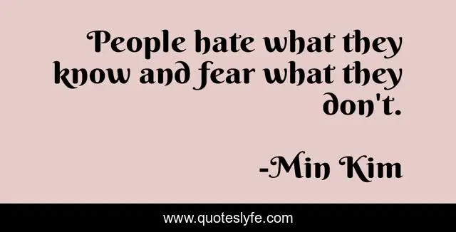 "Min Kim Quotes." Quoteslyfe.com, 2025. Sun. 07 Dec. 2025. <https://www.quoteslyfe.com/quote/People-hate-what-they-know-and-fear-45693>.