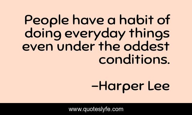 This page presents the quote "People have a habit of doing everyday things even under the oddest conditions.". Author of this quote is Harper Lee. .