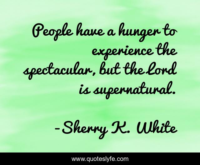 This page presents the quote "People have a hunger to experience the spectacular, but the Lord is supernatural.". Author of this quote is Sherry K. White. This quote is about kingdom-of-god, faith, supernatural, spectacular,.