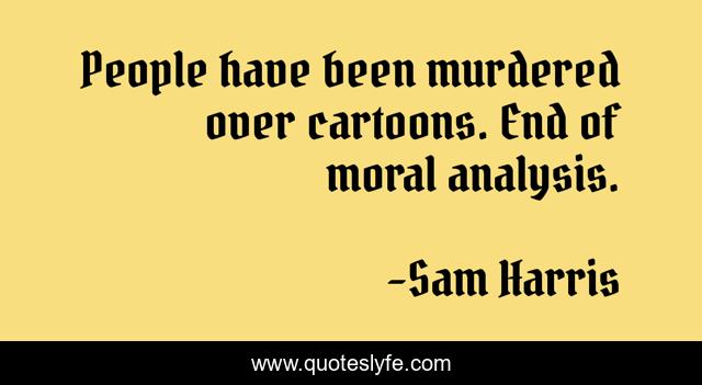 This page presents the quote "People have been murdered over cartoons. End of moral analysis.". Author of this quote is Sam Harris. This quote is about atheism, charlie-hebdo, islamic-terrorism, religion-vs-science, fanaticism-religion, cartoons,.