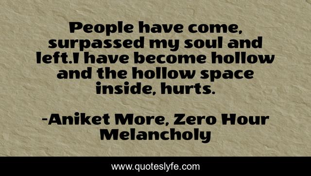 This page presents the quote "People have come, surpassed my soul and left.I have become hollow and the hollow space inside, hurts.". Author of this quote is Aniket More, Zero Hour Melancholy. This quote is about dark, deep-thoughts, macabre,.