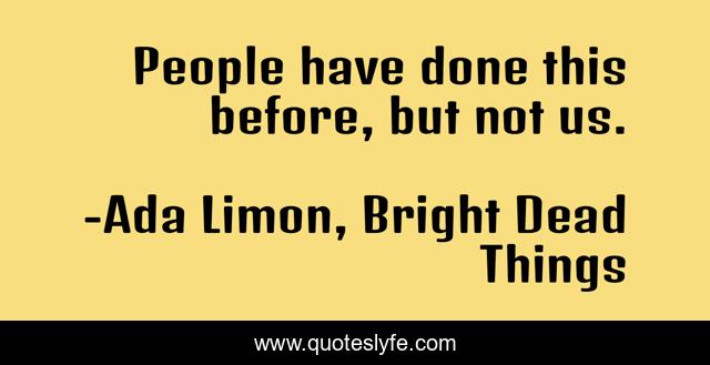 This page presents the quote "People have done this before, but not us.". Author of this quote is Ada Limon, Bright Dead Things. This quote is about past, first-time, humanity,.