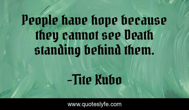 This page presents the quote "People have hope because they cannot see Death standing behind them.". Author of this quote is Tite Kubo. This quote is about humor, hope,.