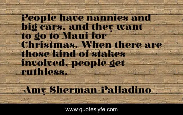This page presents the quote "People have nannies and big cars, and they want to go to Maui for Christmas. When there are those kind of stakes involved, people get ruthless.". Author of this quote is Amy Sherman-Palladino. This quote is about kind, people,.