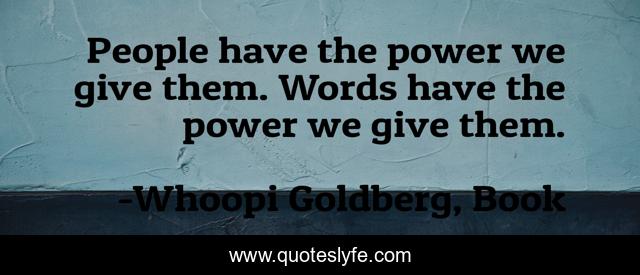 This page presents the quote "People have the power we give them. Words have the power we give them.". Author of this quote is Whoopi Goldberg, Book. This quote is about enthusiasm, inspirational, power, words, people,.