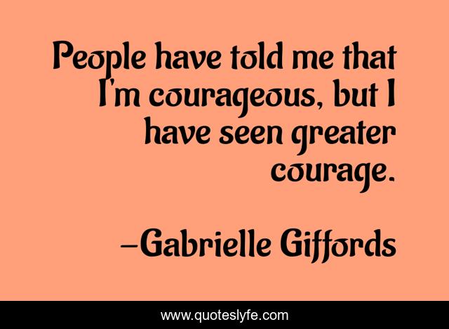 This page presents the quote "People have told me that I'm courageous, but I have seen greater courage.". Author of this quote is Gabrielle Giffords. This quote is about me, courageous, people,.