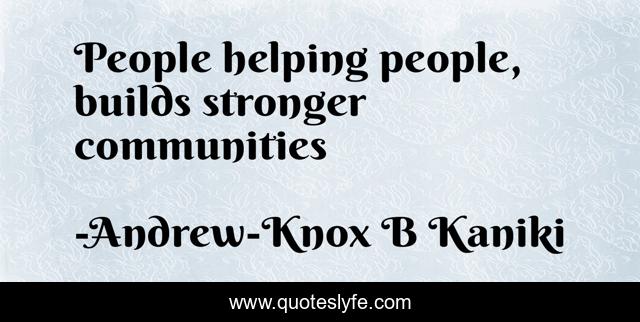 "Andrew-Knox B Kaniki Quotes." Quoteslyfe.com, 2025. Mon. 08 Dec. 2025. <https://www.quoteslyfe.com/quote/People-helping-people-builds-stronger-communities-153338>.