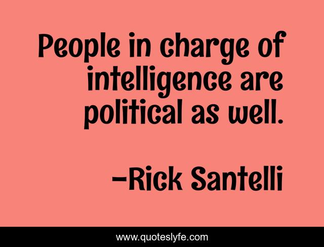 This page presents the quote "People in charge of intelligence are political as well.". Author of this quote is Rick Santelli. This quote is about political, well, people,.
