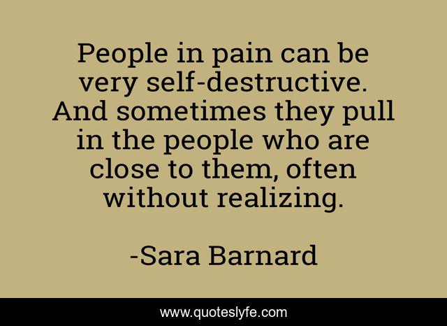 This page presents the quote "People in pain can be very self-destructive. And sometimes they pull in the people who are close to them, often without realizing.". Author of this quote is Sara Barnard. .