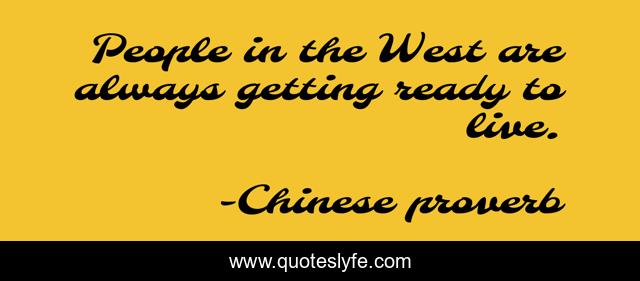 This page presents the quote "People in the West are always getting ready to live.". Author of this quote is Chinese proverb. .