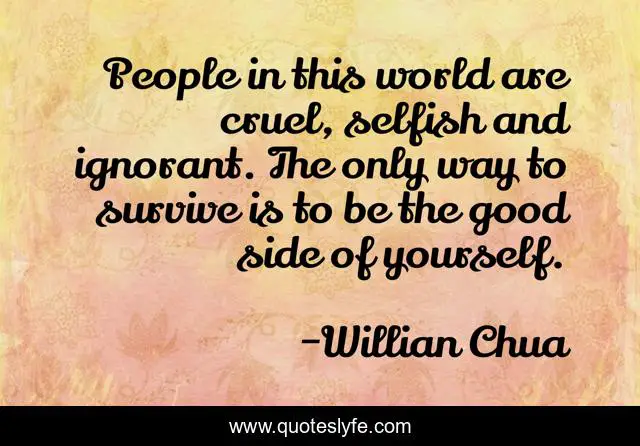 This page presents the quote "People in this world are cruel, selfish and ignorant. The only way to survive is to be the good side of yourself.". Author of this quote is Willian Chua. .