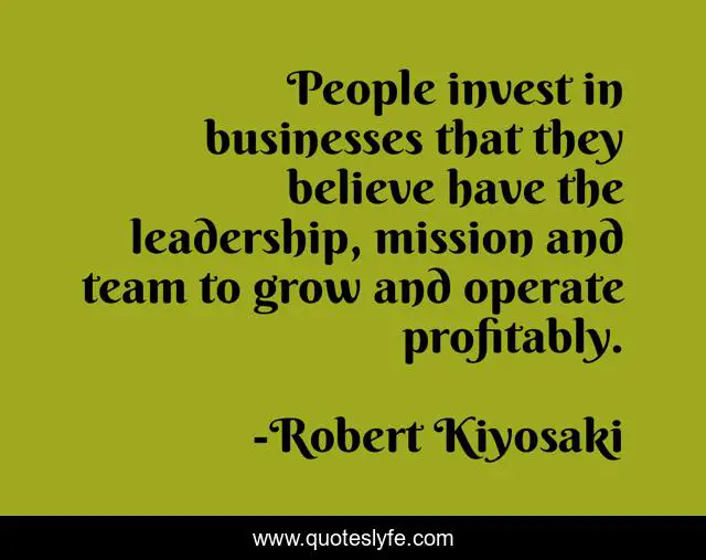 This page presents the quote "People invest in businesses that they believe have the leadership, mission and team to grow and operate profitably.". Author of this quote is Robert Kiyosaki. This quote is about team, believe, people,.