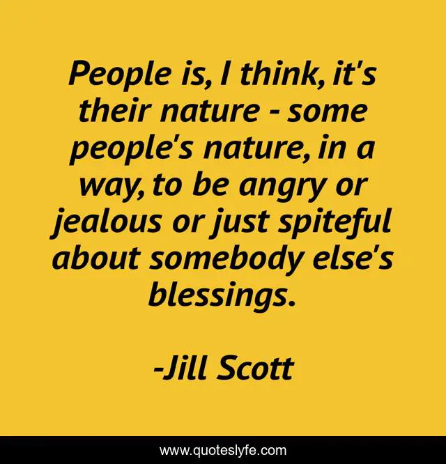 This page presents the quote "People is, I think, it's their nature - some people's nature, in a way, to be angry or jealous or just spiteful about somebody else's blessings.". Author of this quote is Jill Scott. This quote is about blessings, think, people,.