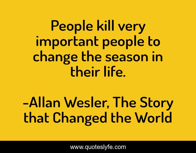 "Allan Wesler, The Story that Changed the World Quotes." Quoteslyfe.com, 2025. Sat. 06 Dec. 2025. <https://www.quoteslyfe.com/quote/People-kill-very-important-people-to-change-216757>.