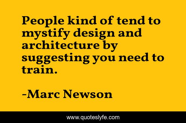 This page presents the quote "People kind of tend to mystify design and architecture by suggesting you need to train.". Author of this quote is Marc Newson. This quote is about train, design, people,.