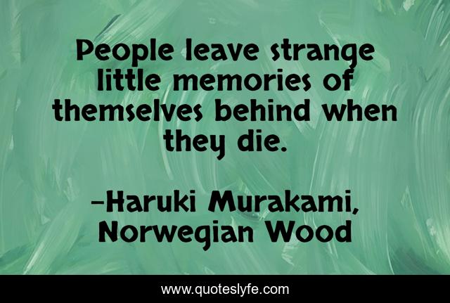 This page presents the quote "People leave strange little memories of themselves behind when they die.". Author of this quote is Haruki Murakami, Norwegian Wood. This quote is about memories, death,.