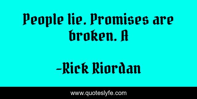 This page presents the quote "People lie. Promises are broken. A". Author of this quote is Rick Riordan. This quote is about broken, life, promises, truth, lies,.