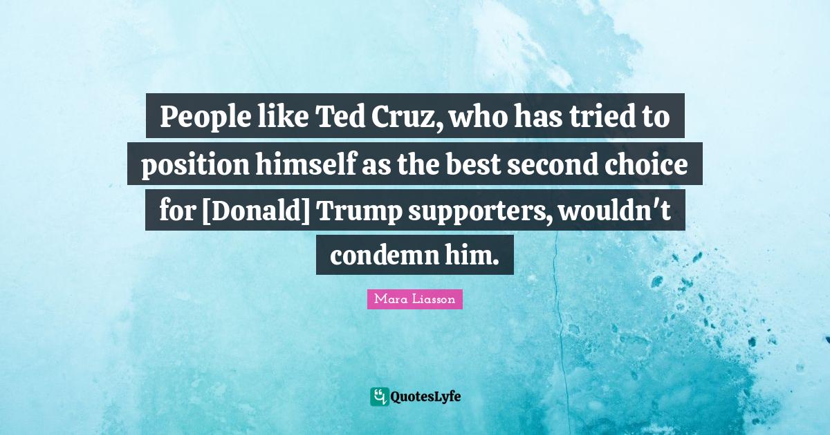 This page presents the quote "People like Ted Cruz, who has tried to position himself as the best second choice for [Donald] Trump supporters, wouldn't condemn him.". Author of this quote is Mara Liasson. This quote is about position, trump, choices, cruz, people, second choice,.