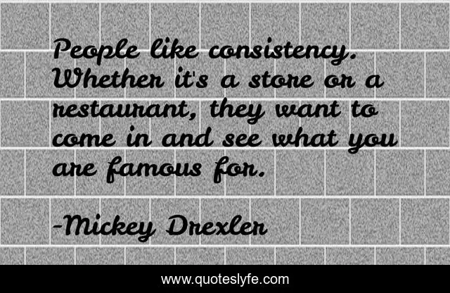 This page presents the quote "People like consistency. Whether it's a store or a restaurant, they want to come in and see what you are famous for.". Author of this quote is Mickey Drexler. This quote is about consistency, people,.