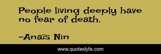 This page presents the quote "People living deeply have no fear of death.". Author of this quote is Anaïs Nin. .