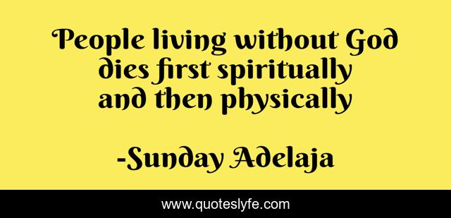 This page presents the quote "People living without God dies first spiritually and then physically". Author of this quote is Sunday Adelaja. This quote is about die, spiritual, physical, god, people,.