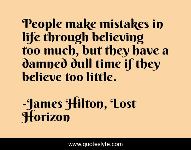 "James Hilton, Lost Horizon Quotes." Quoteslyfe.com, 2025. Sun. 07 Dec. 2025. <https://www.quoteslyfe.com/quote/People-make-mistakes-in-life-through-believing-1983>.