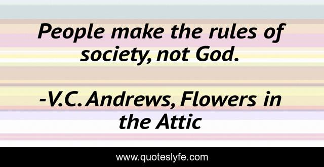 This page presents the quote "People make the rules of society, not God.". Author of this quote is V.C. Andrews, Flowers in the Attic. This quote is about god, society,.