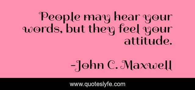 This page presents the quote "People may hear your words, but they feel your attitude.". Author of this quote is John C. Maxwell. This quote is about feel, words, people,.