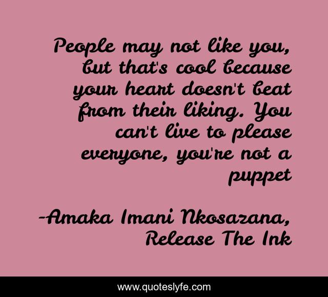 People may not like you, but that's cool because your heart doesn't beat from their liking. You can't live to please everyone, you're not a puppet